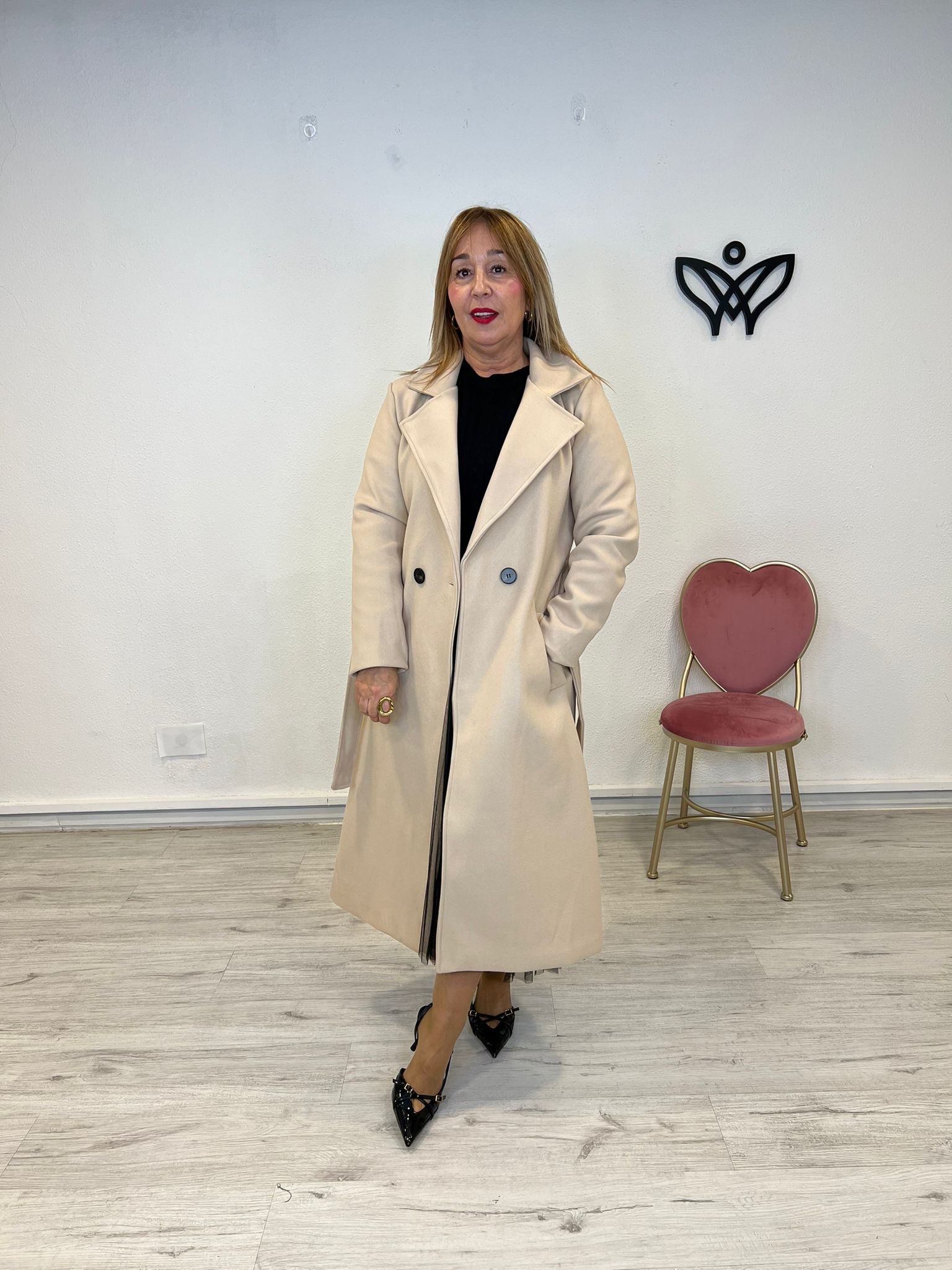 ABRIGO PAÑO LARGO SOLAPAS CLASICO DE PAÑO BEIS