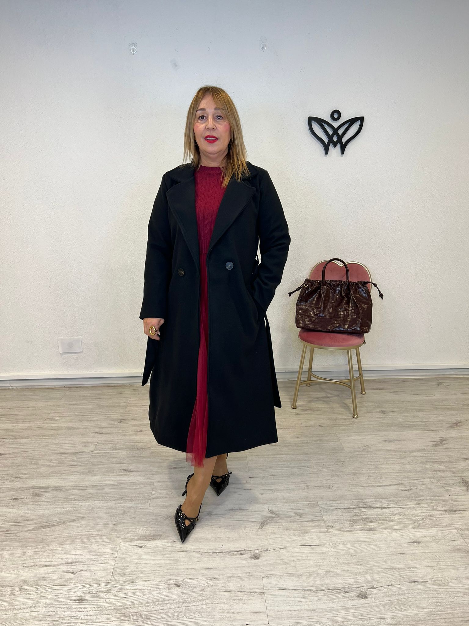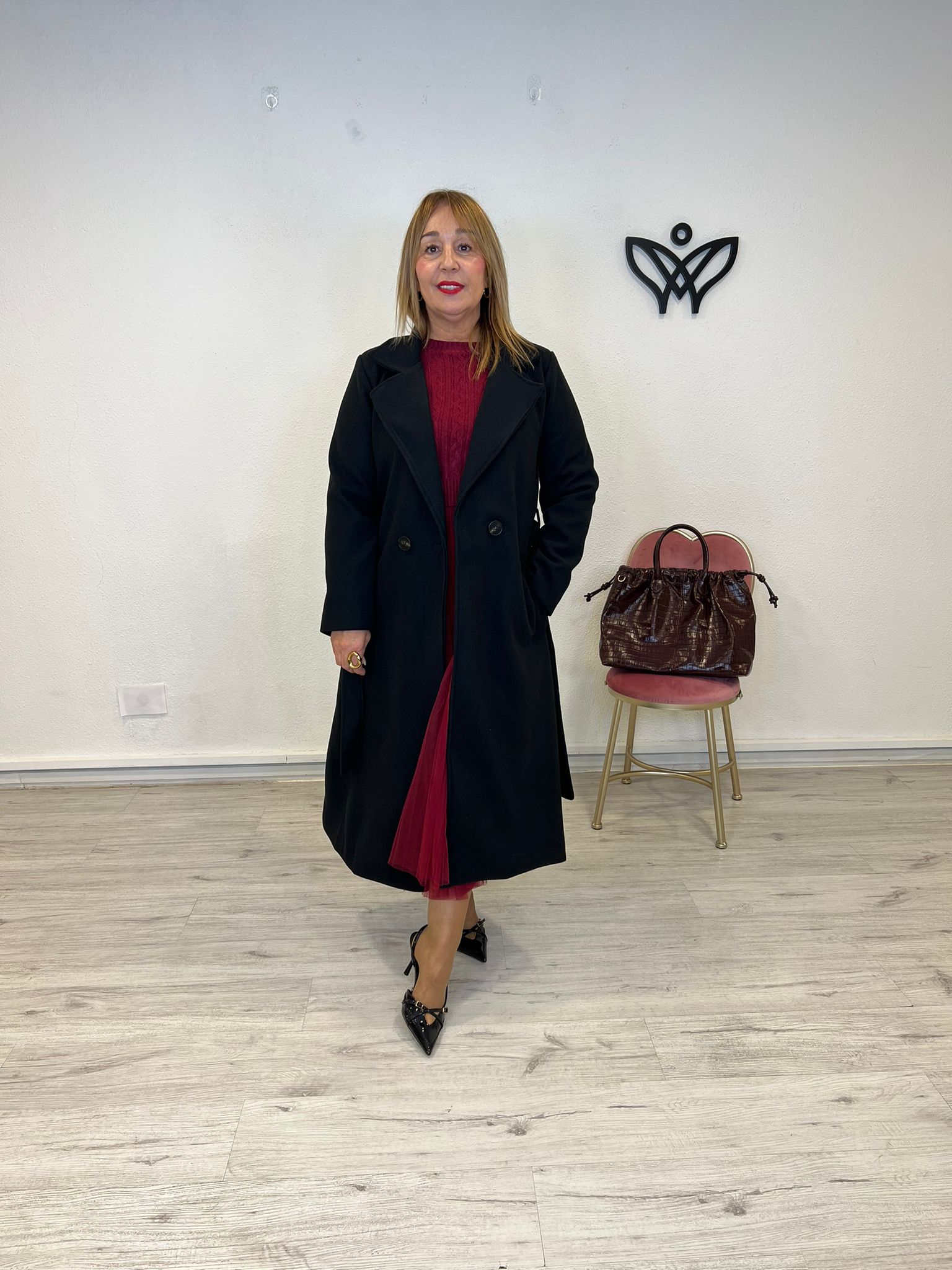 ABRIGO PAÑO LARGO SOLAPAS CLASICO DE PAÑO NEGRO