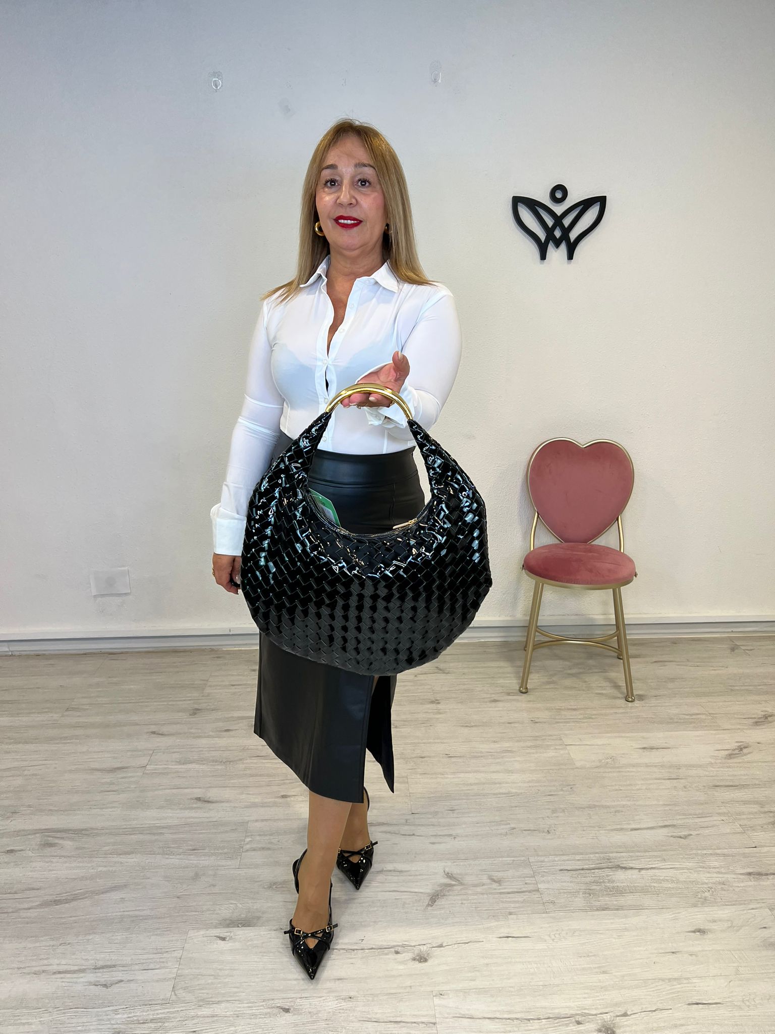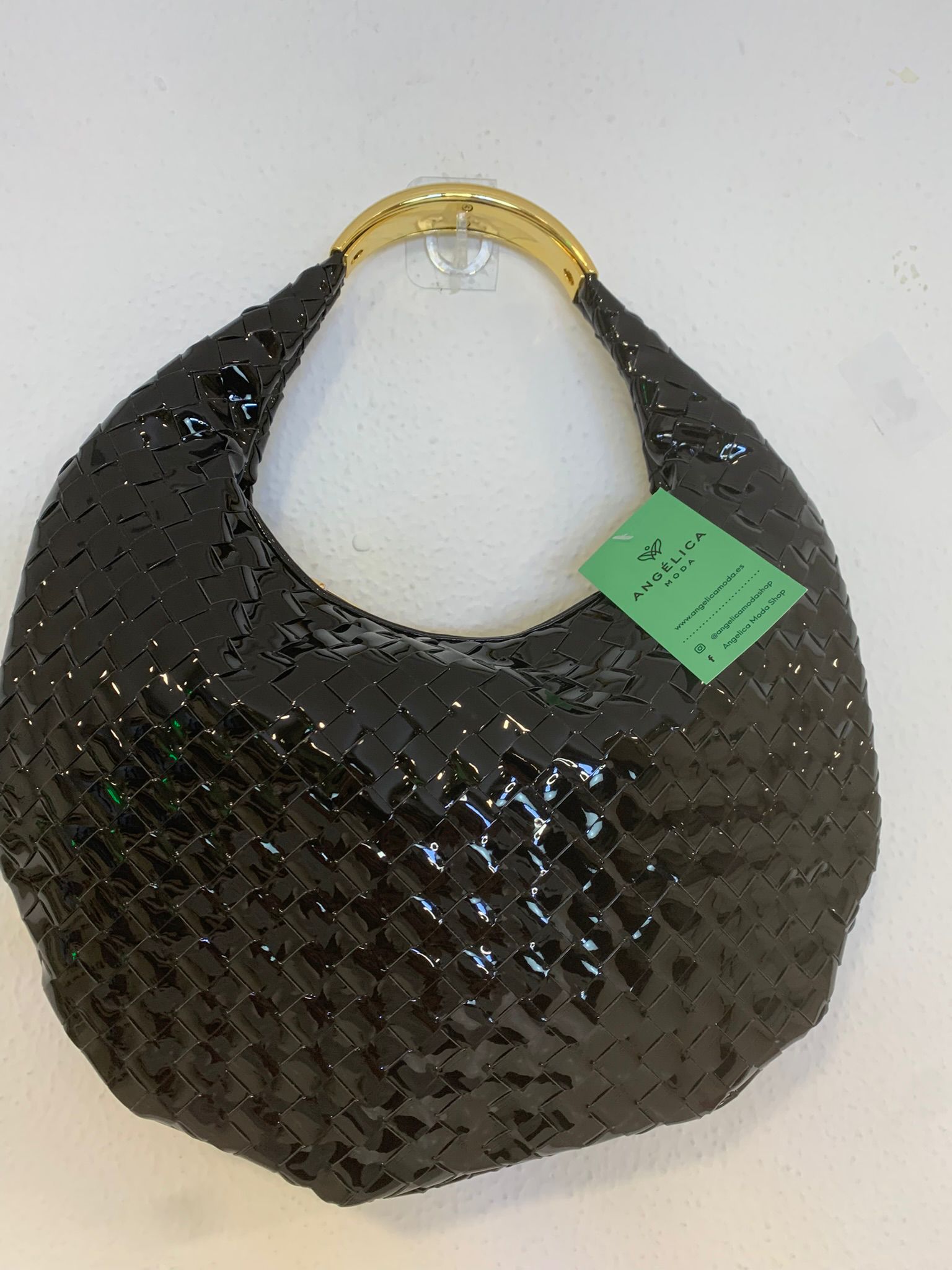 Bolso de CHAROL NEGRO media luna.