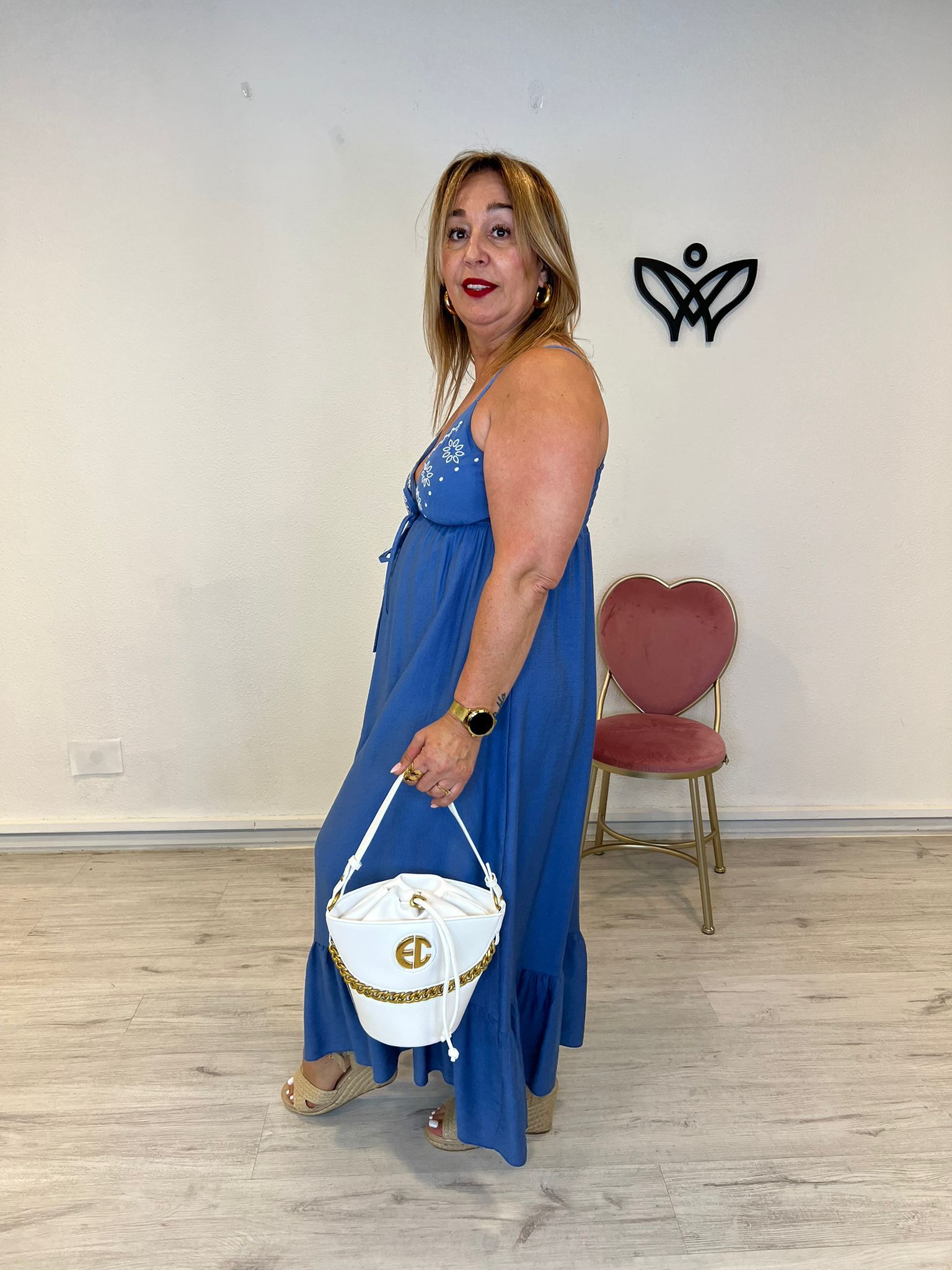 BOLSO POLIPIEL BOMBONERA DETALLE DORADO BLANCO