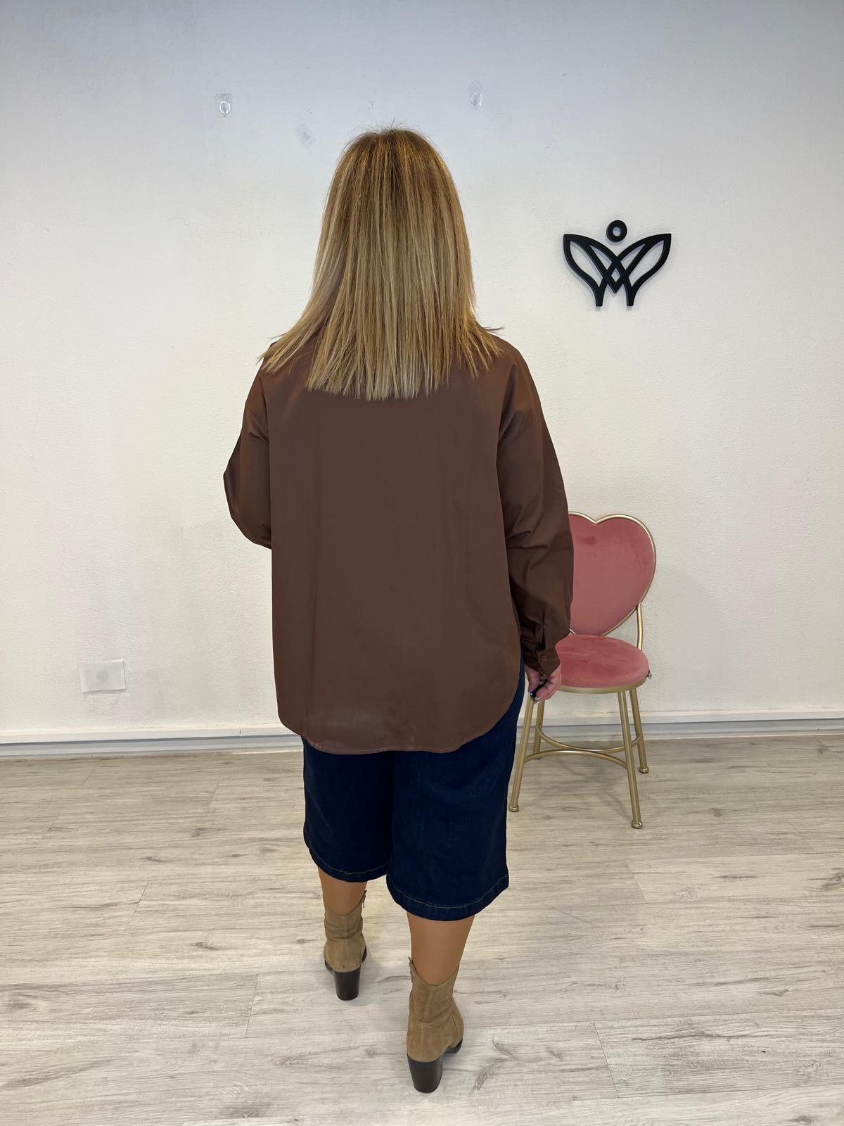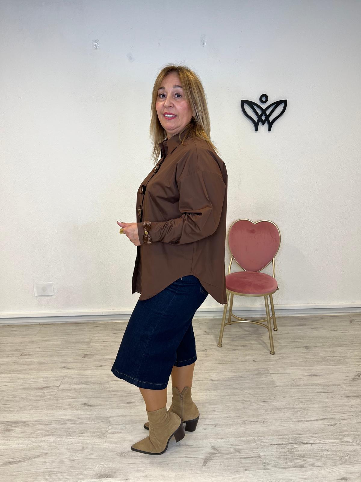 CAMISA CUELLO CUELLO CAMISERO CON LAZOS ALGODON MARRON