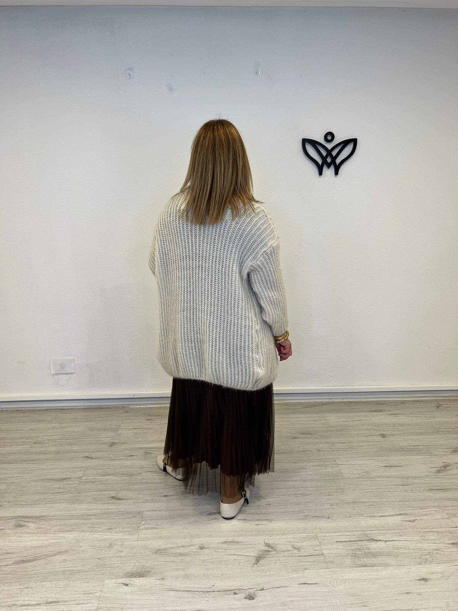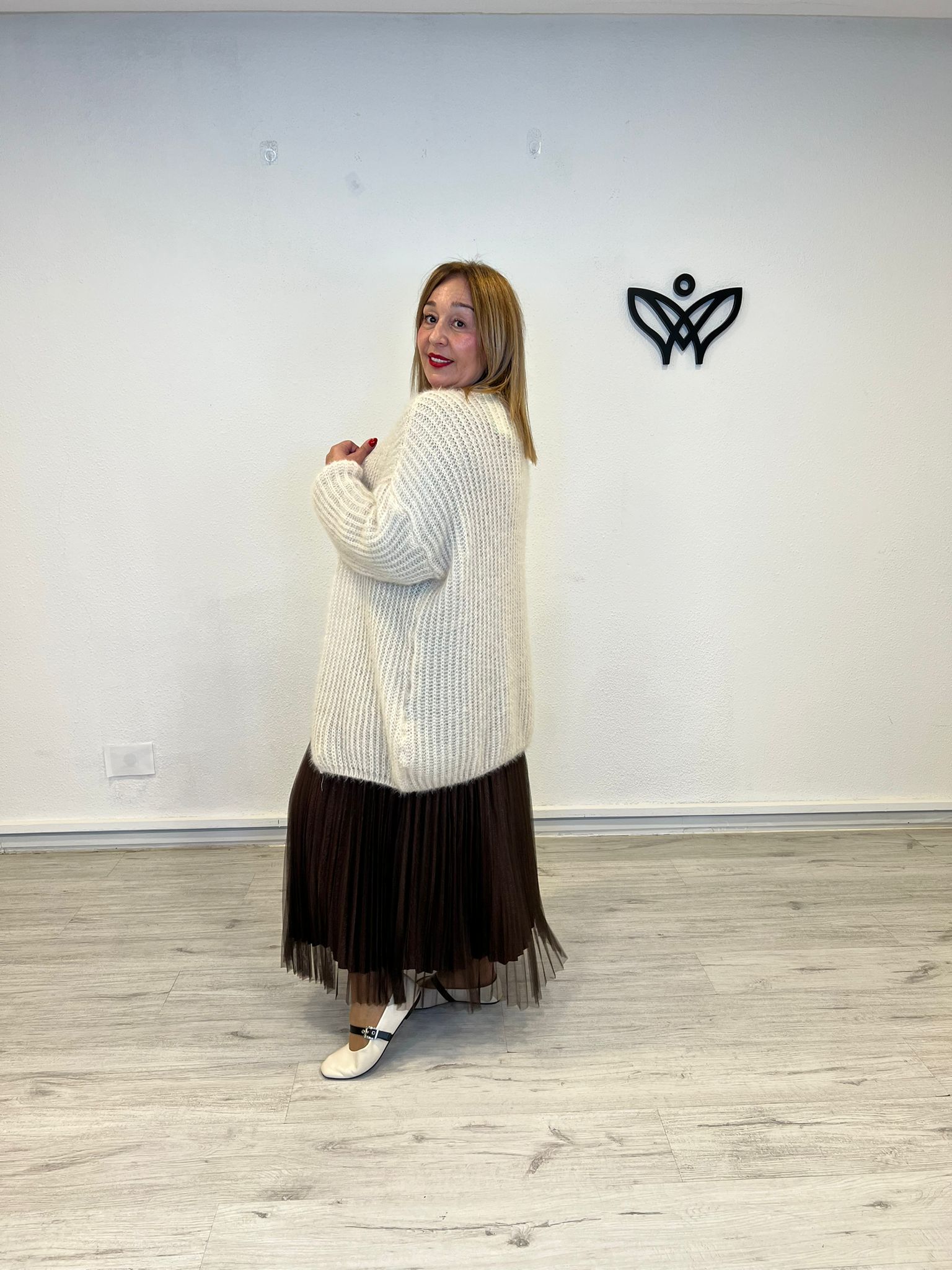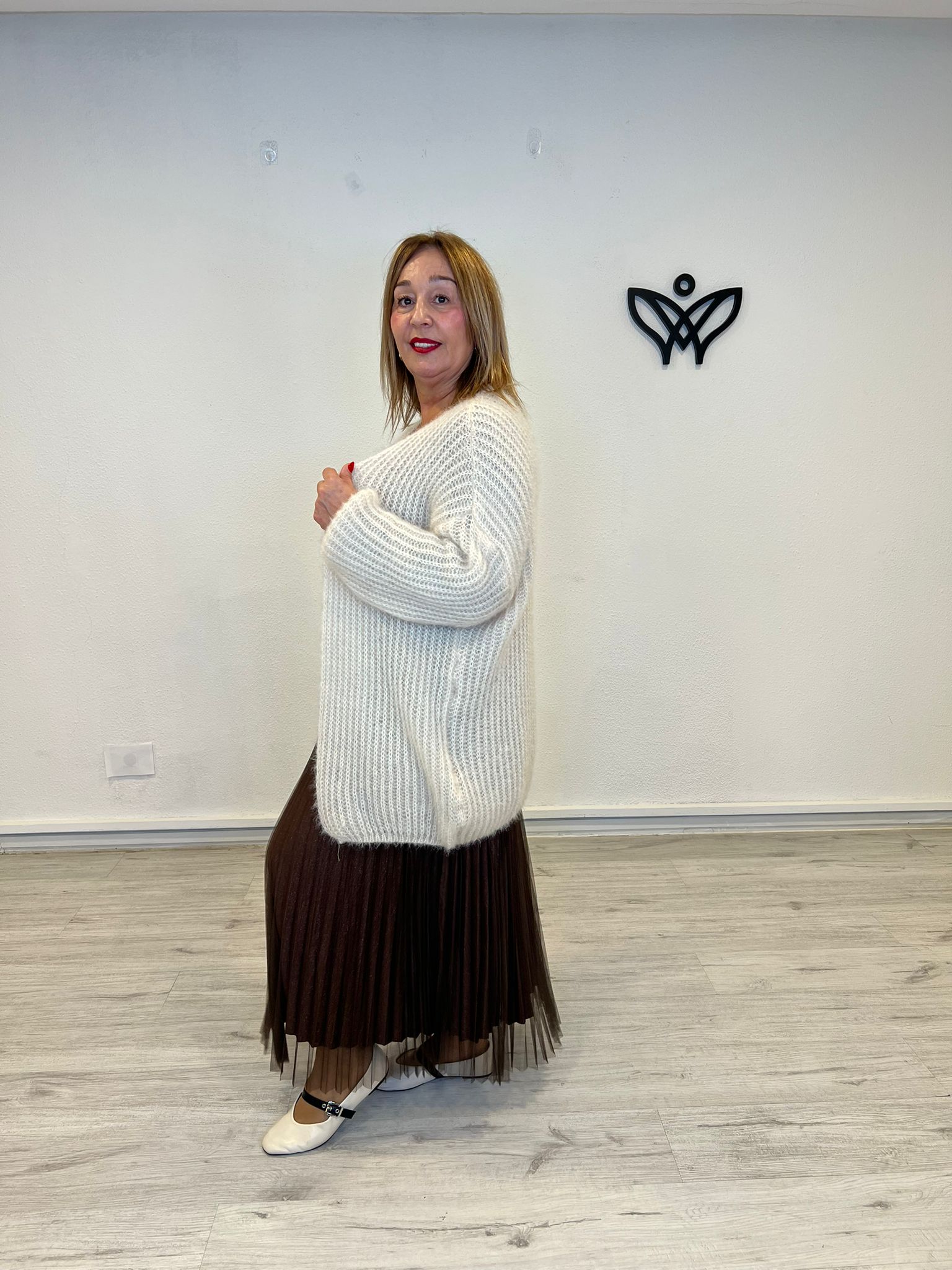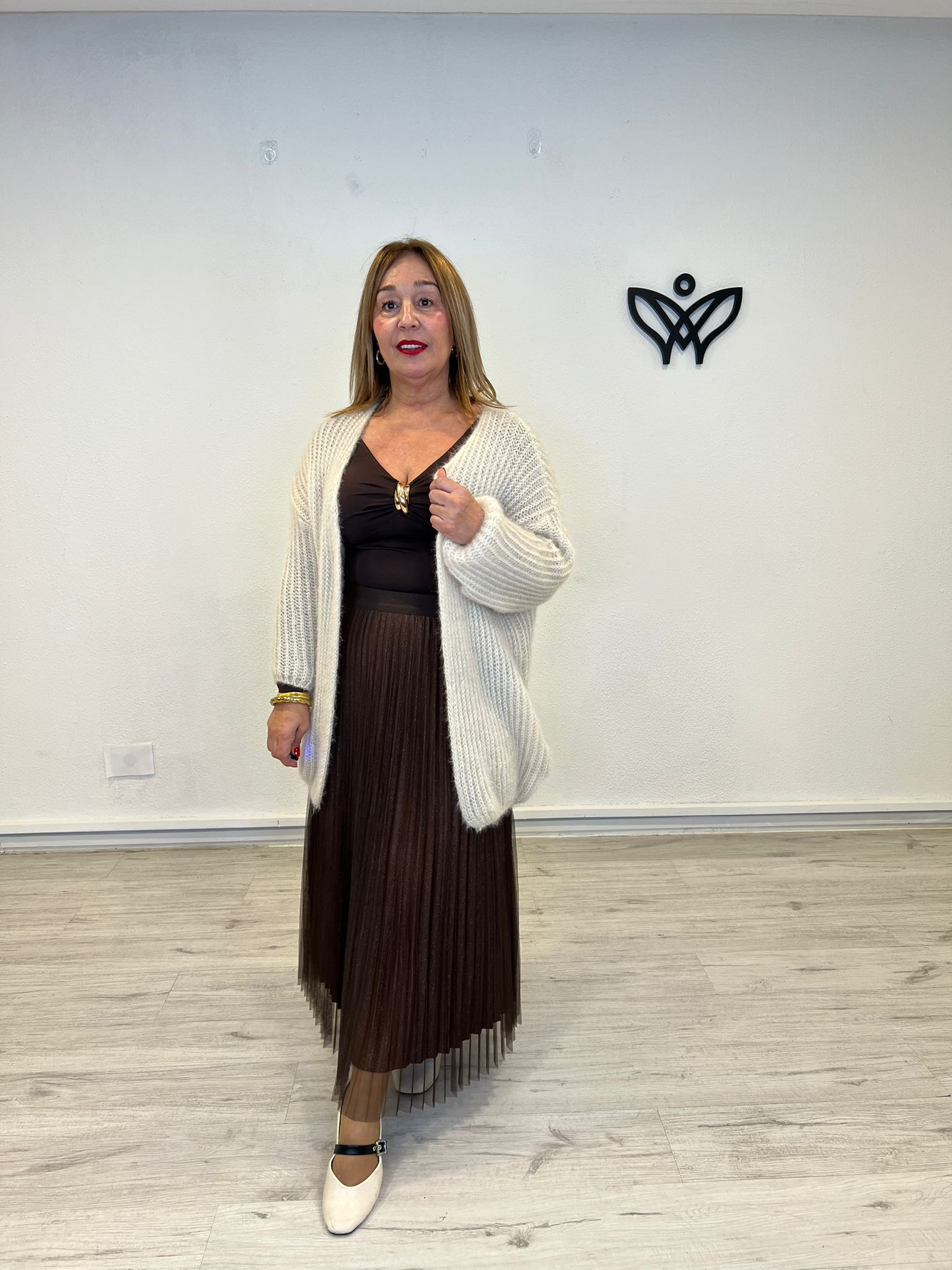 CHAQUETA DE PUNTO LARGA MARRON BEIS