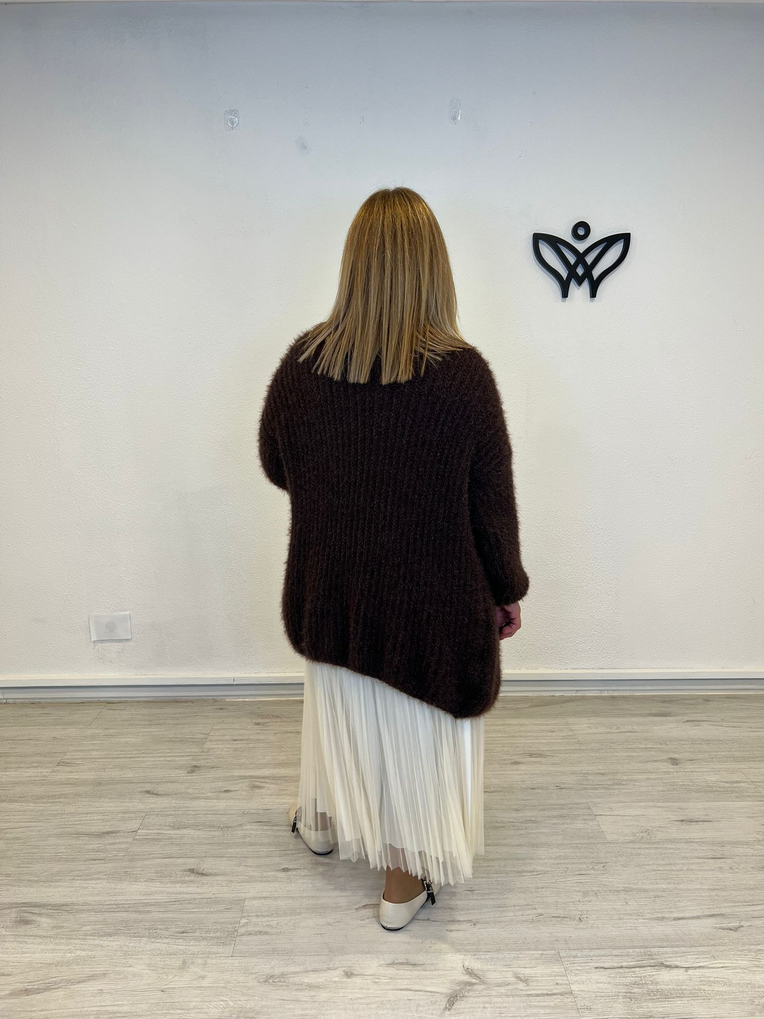 CHAQUETA DE PUNTO LARGA MARRON CHOCOLATE