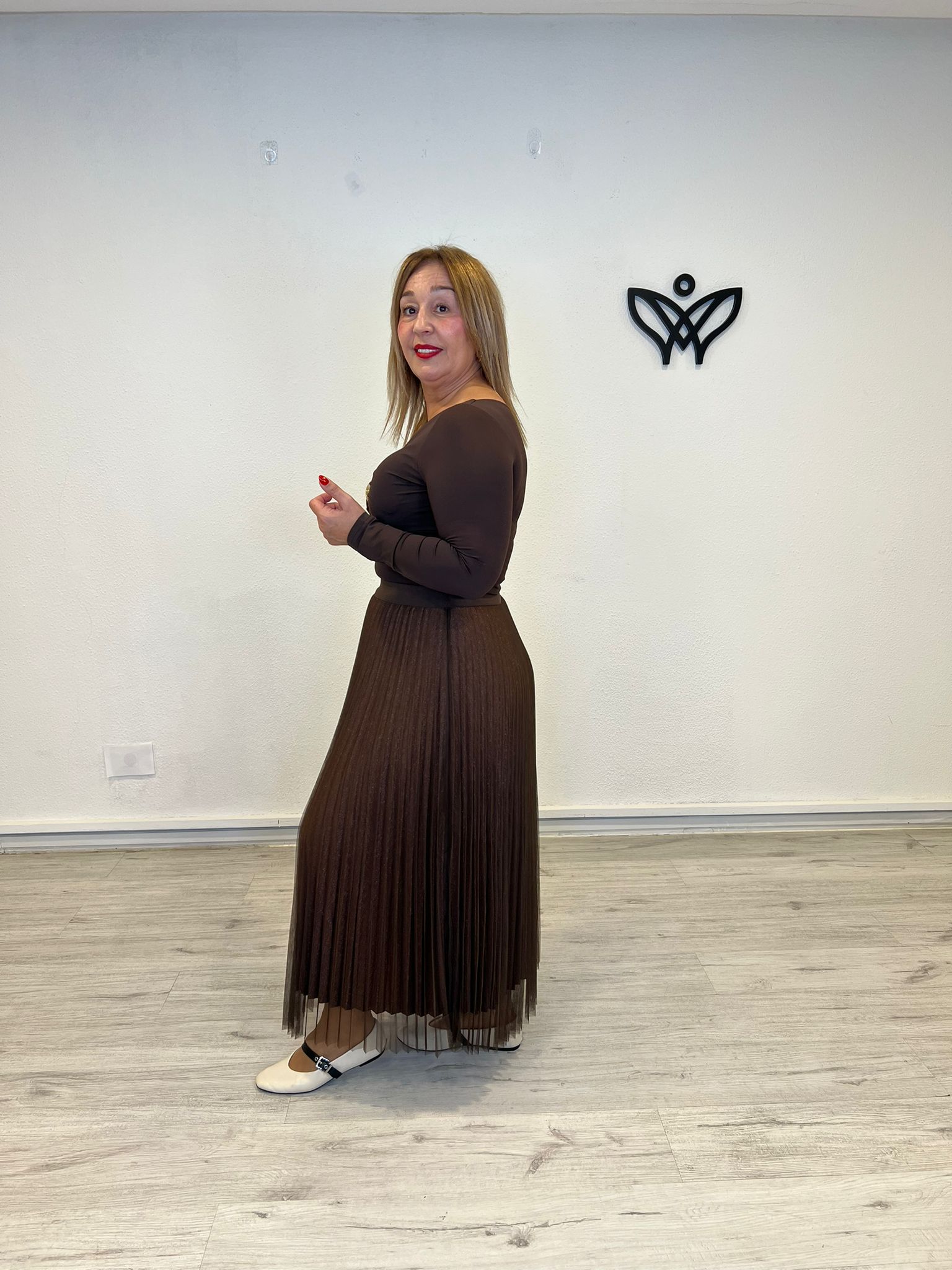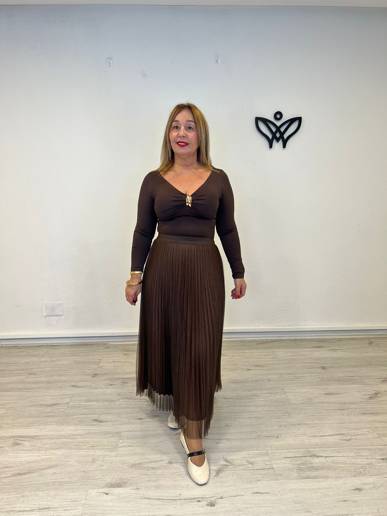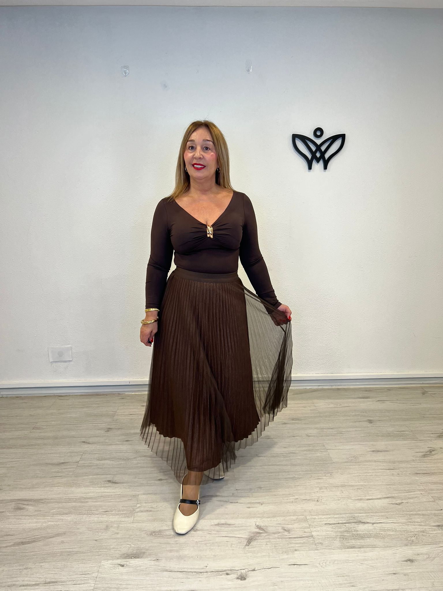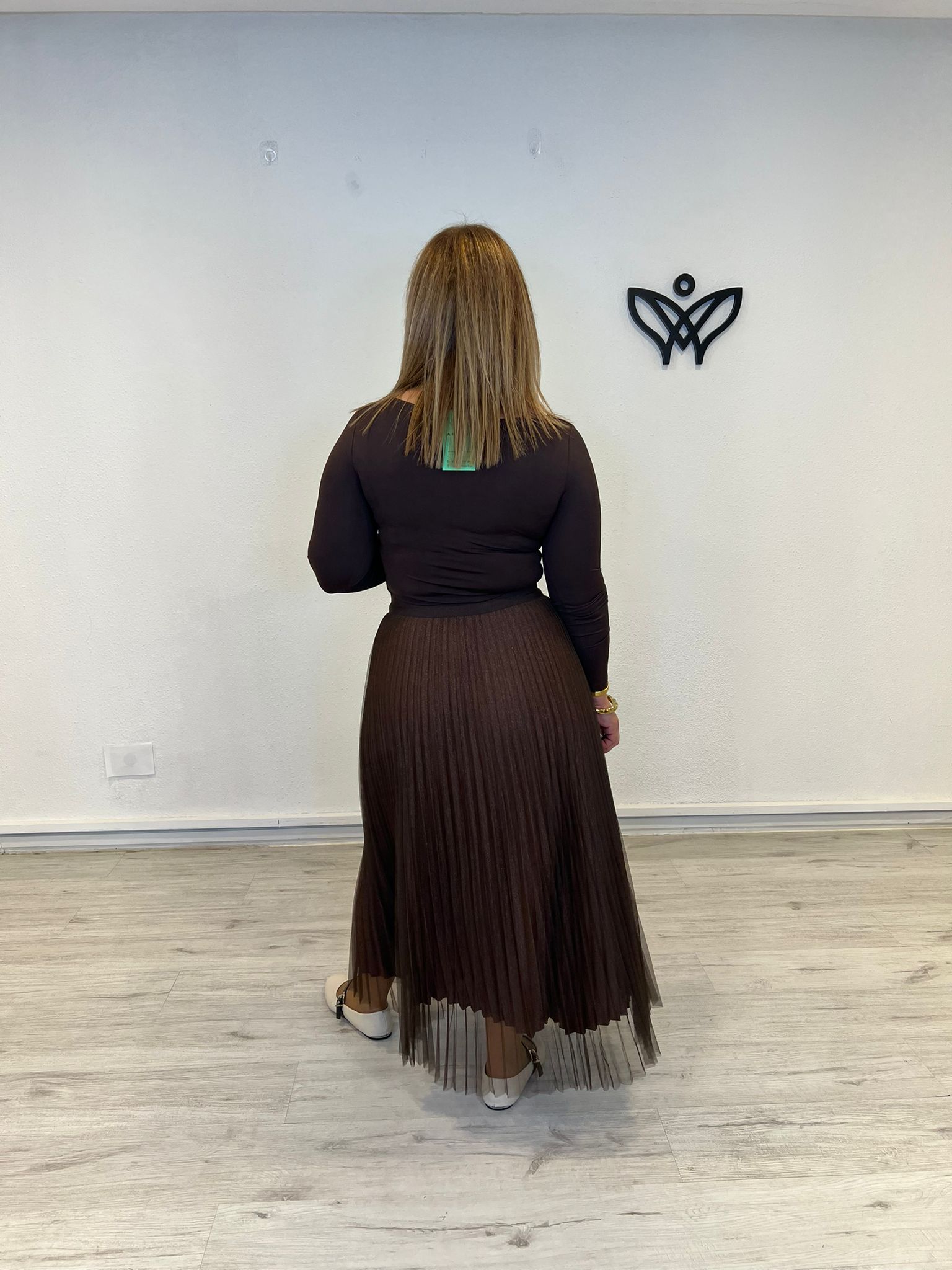 FALDA DE TULL PLISADA GOMA EN LA CINTURA MARRON CHOCOLATE
