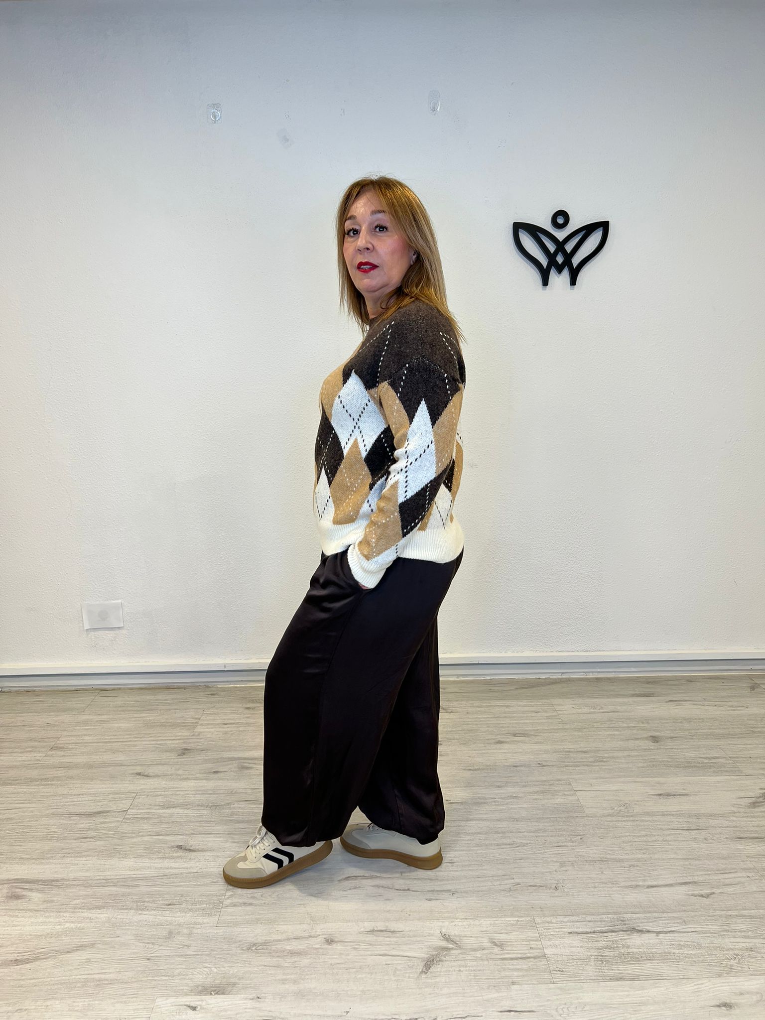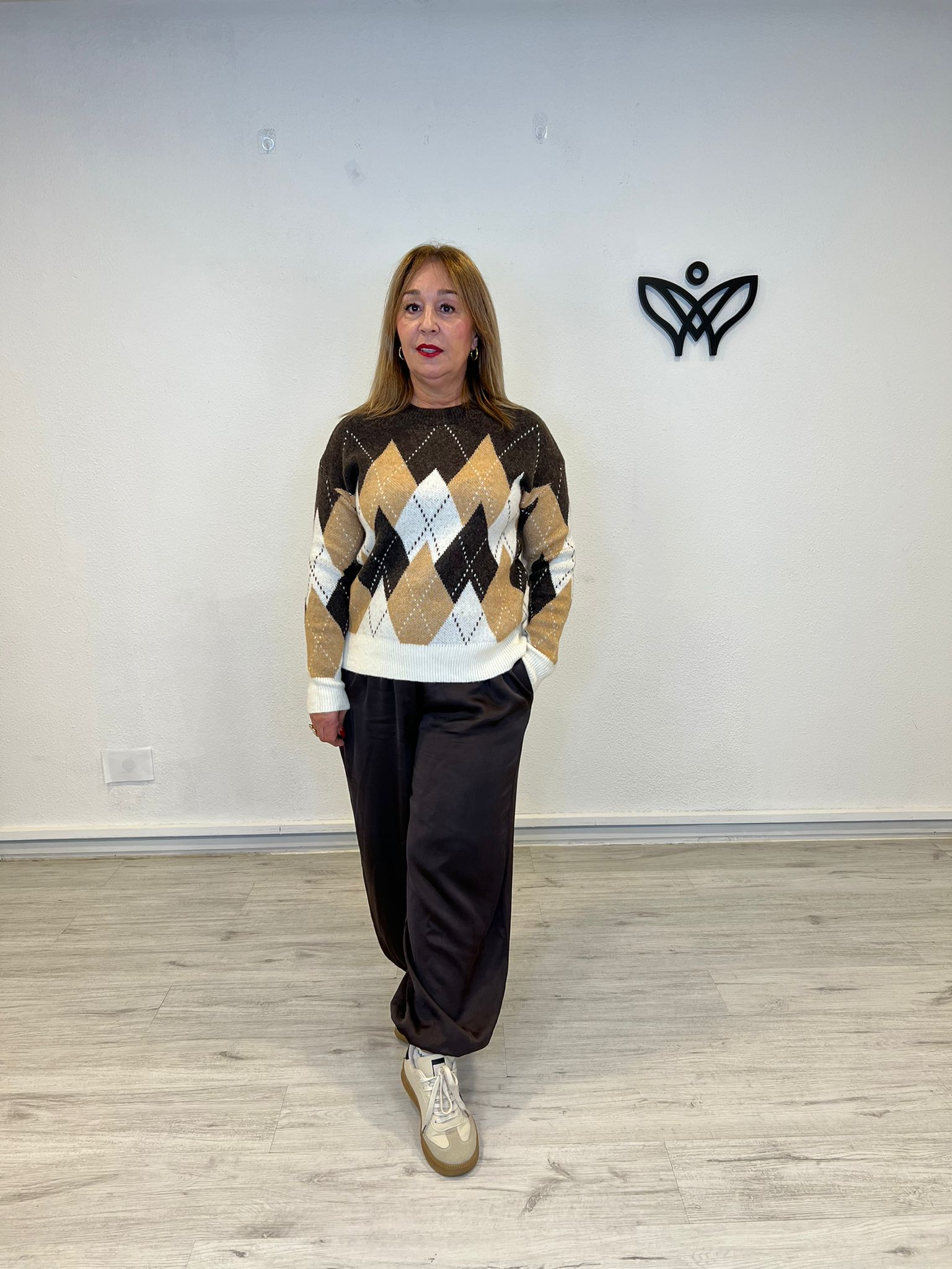 JERSEY DE PUNTO CUELLO REDONDO ROMBOS MARRON CHOCOLATE cantidad