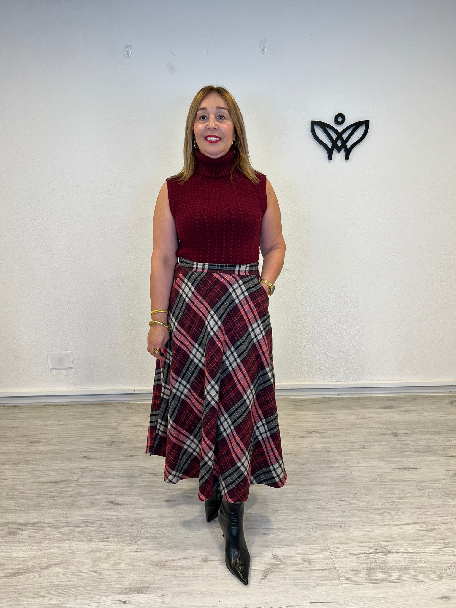 / JERSEY DE PUNTO CUELLO SUBIDO SIN MANGAS BURDEOS