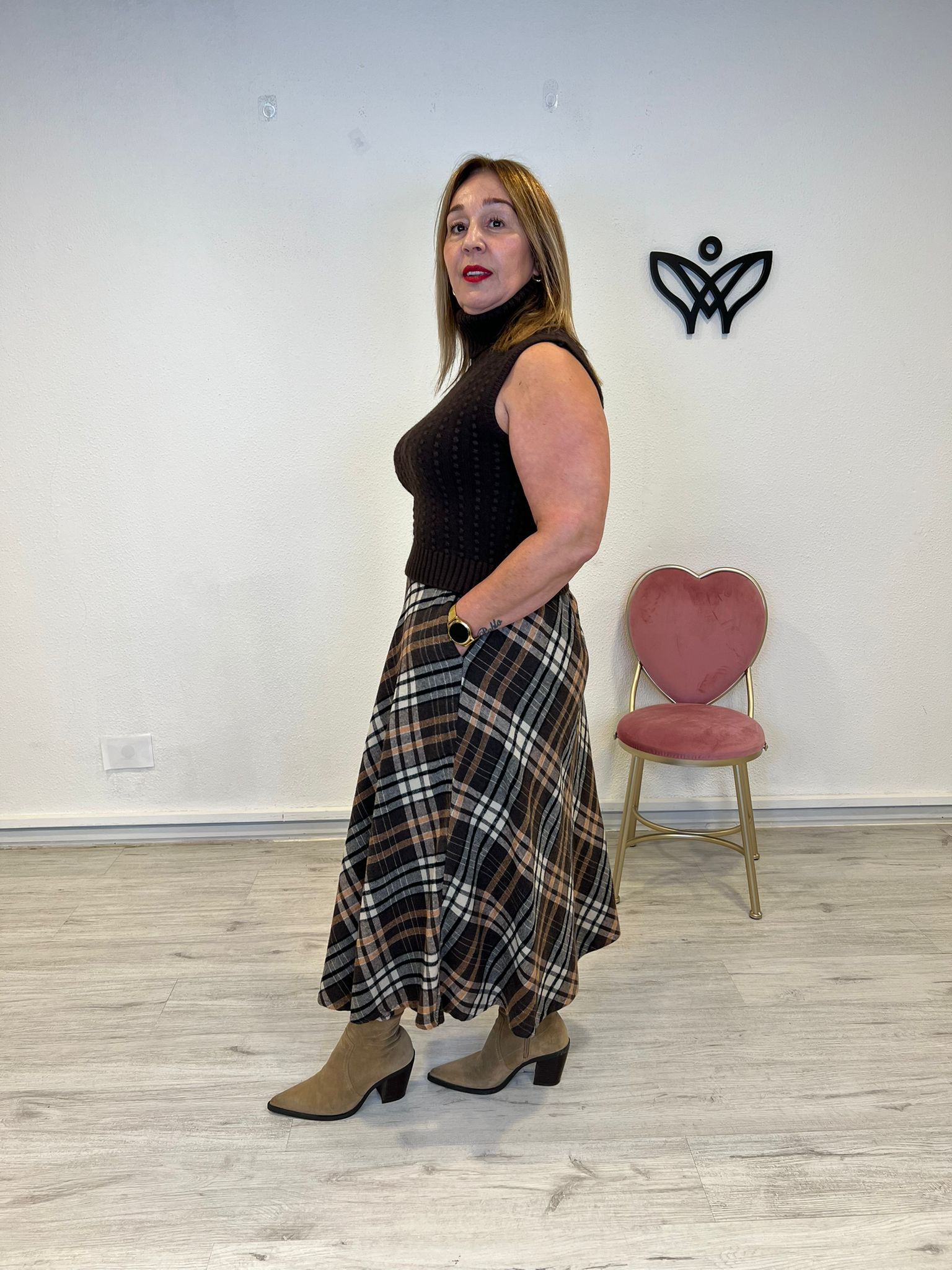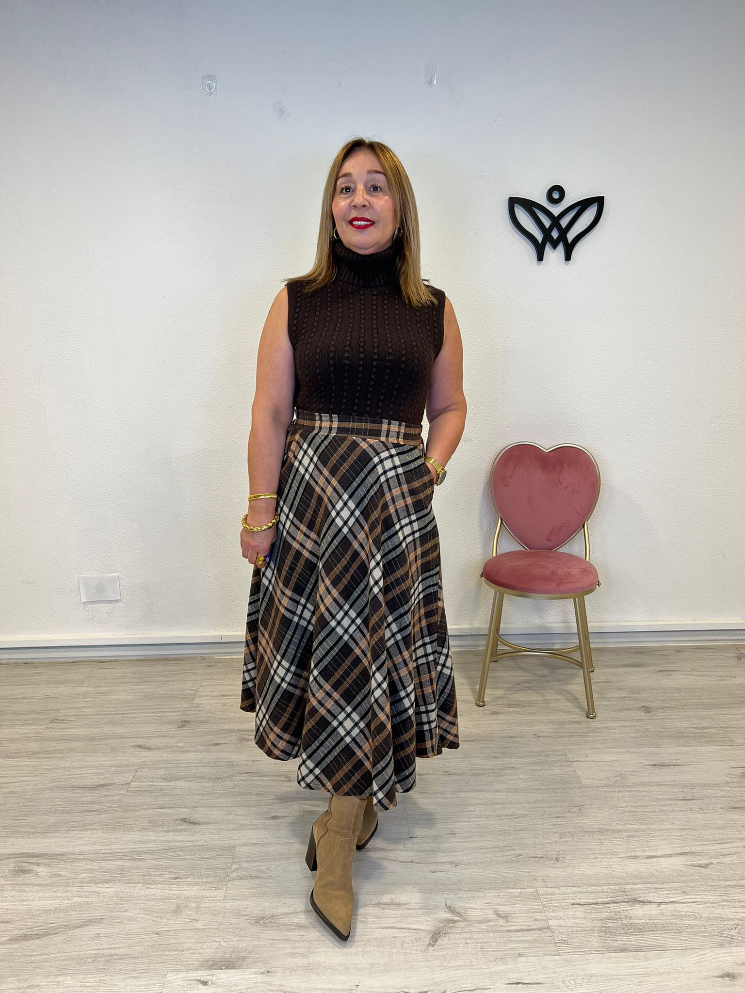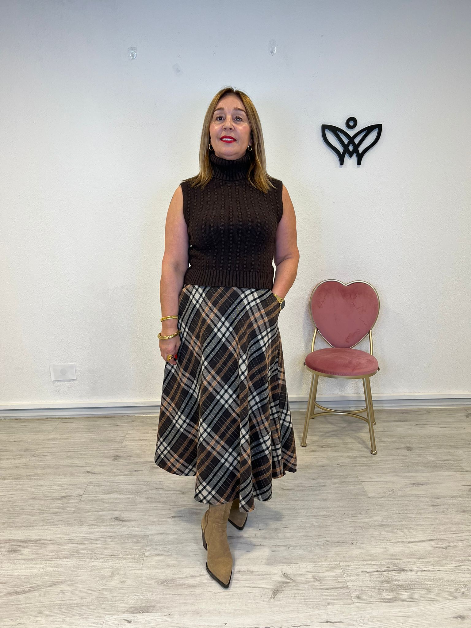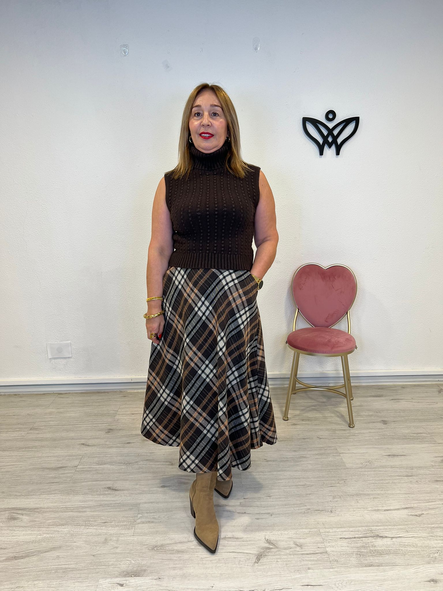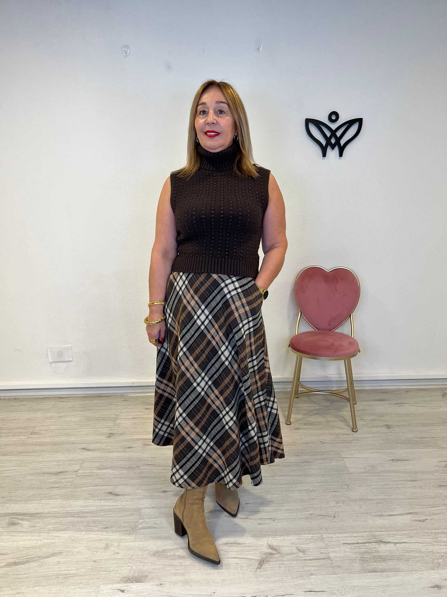 JERSEY DE PUNTO CUELLO SUBIDO SIN MANGAS MARRON cantidad
