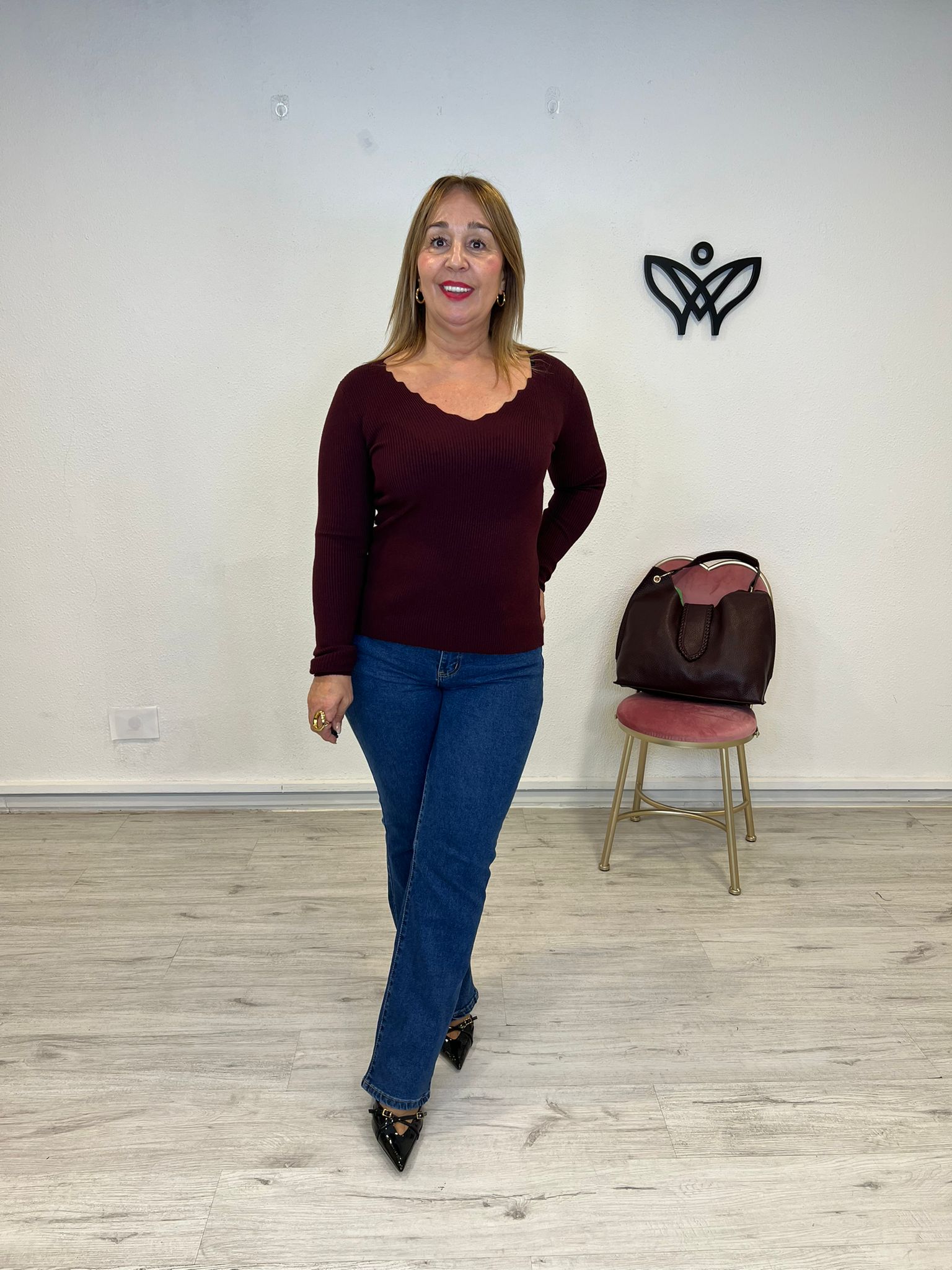 JERSEY DE PUNTO DE CANALE ESCOTE PICO BURDEOS