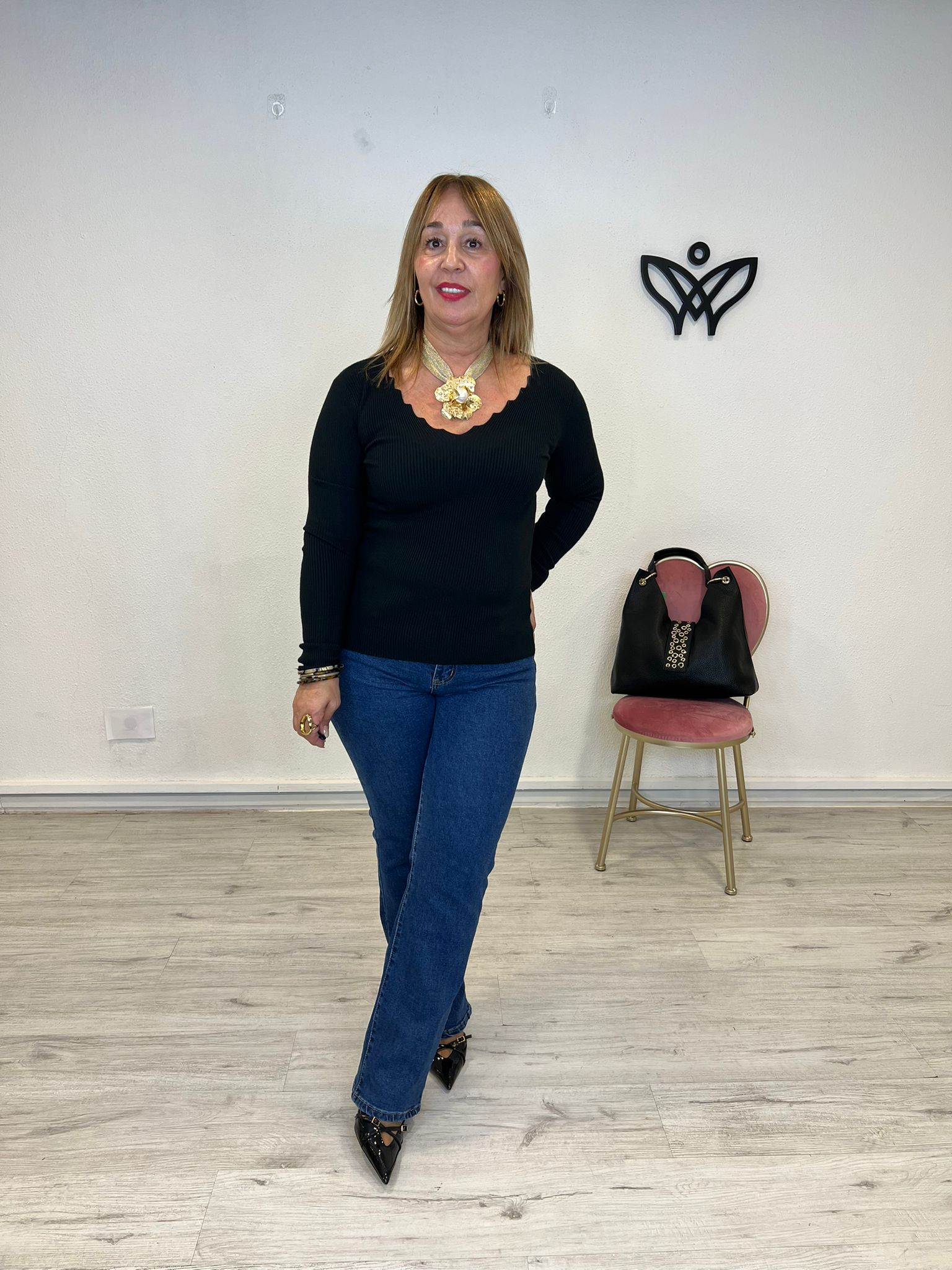 JERSEY DE PUNTO DE CANALE ESCOTE PICO NEGRO cantidad