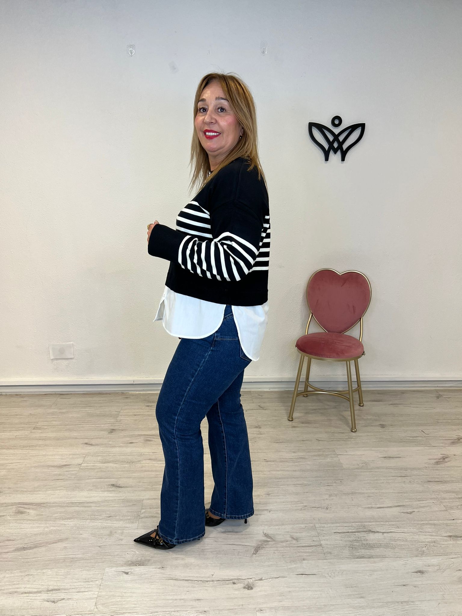 JERSEY DE PUNTO DE RAYAS BAJO CAMISA NEGRO