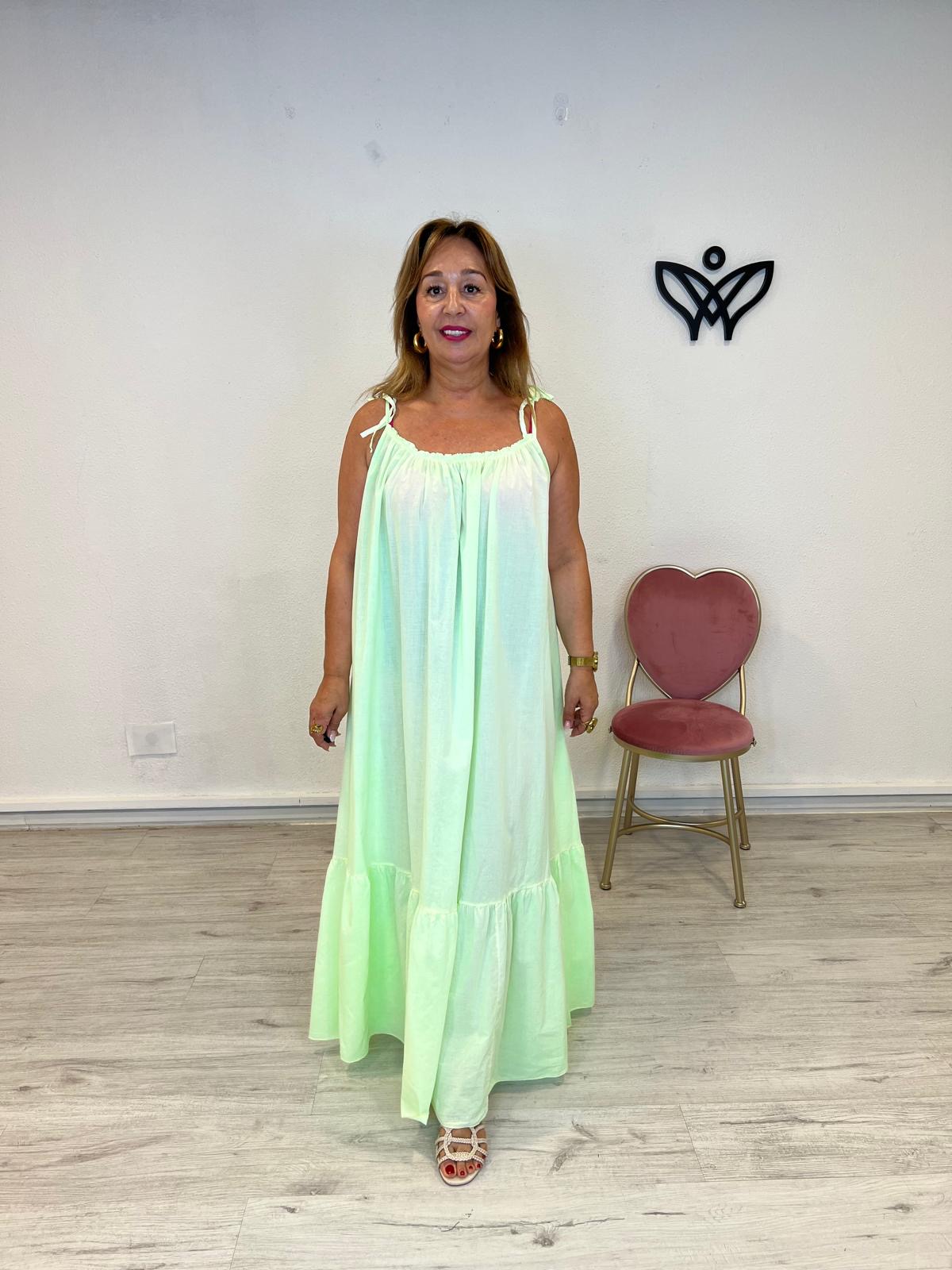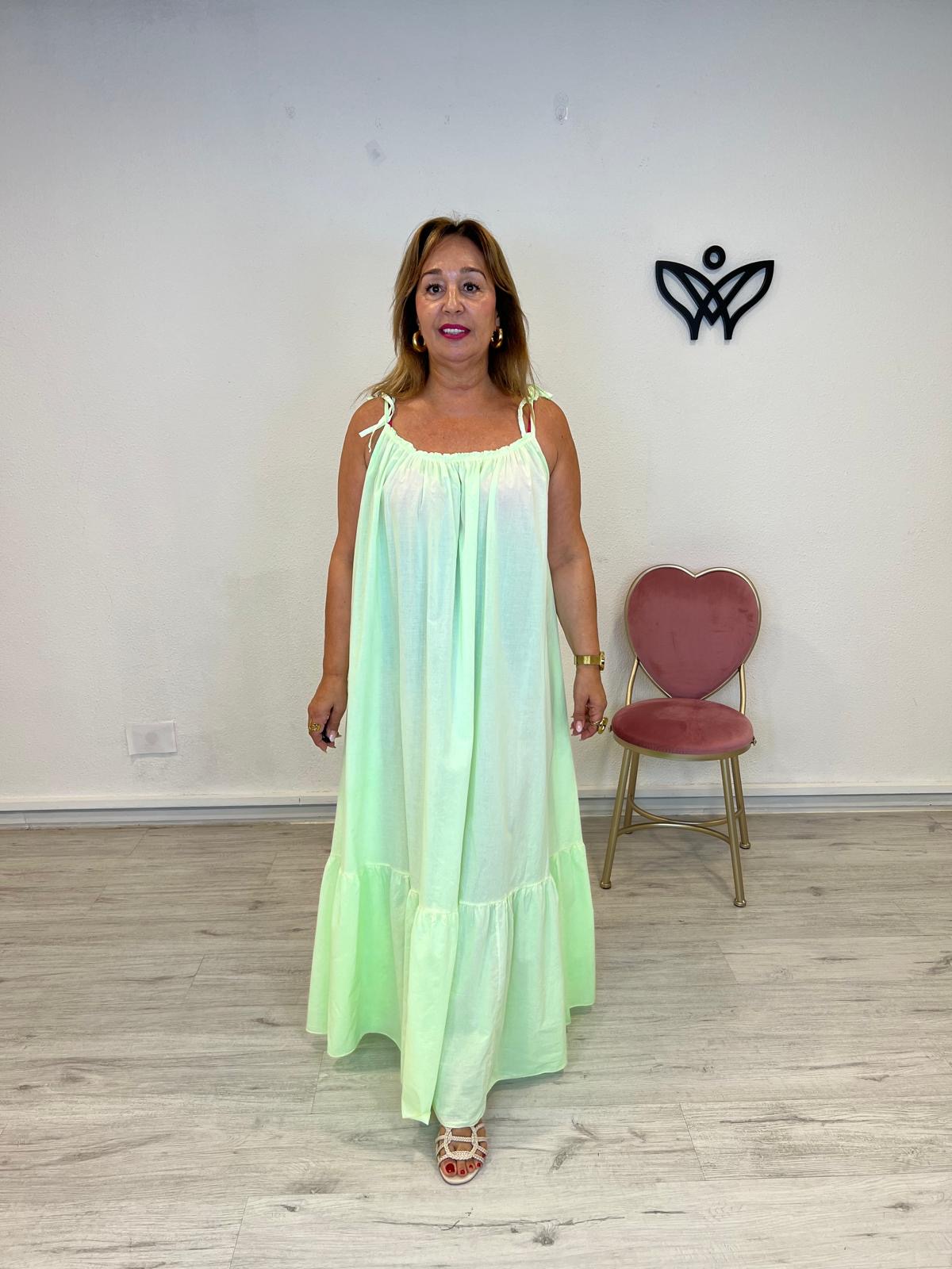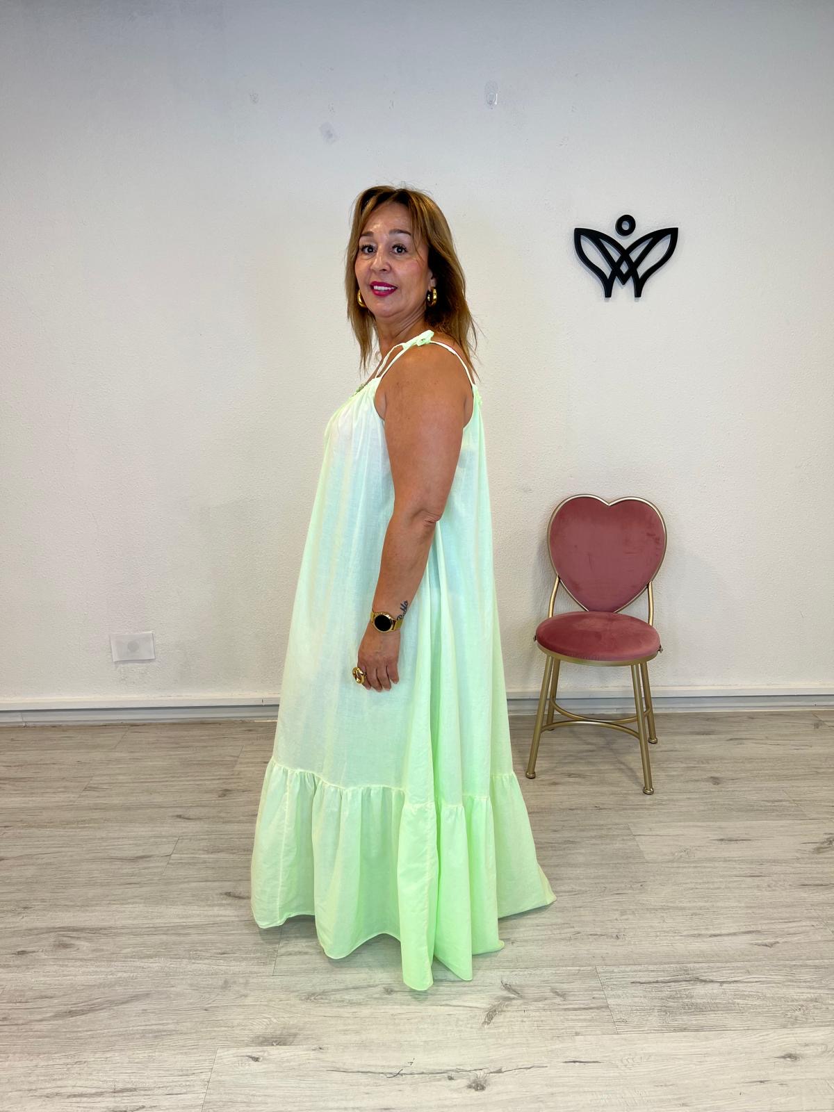 VESTIDO LARGO FLUOR VOLANTES VERDE