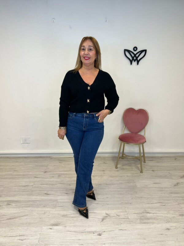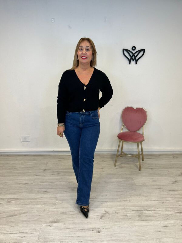 55,00 €El precio original era: 55,00 €.44,00 €El precio actual es: 44,00 €. - 20%CHAQUETA CARDIGAN PUNTO CORTA ESCOTE PICO NEGRA