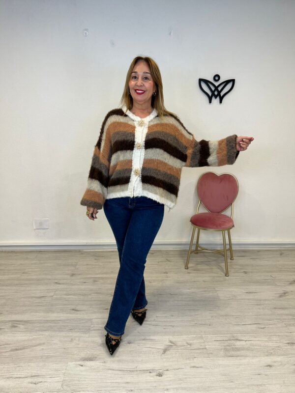29,00 €El precio original era: 29,00 €.23,20 €El precio actual es: 23,20 €. - 20%CHAQUETA CARDIGAN PUNTO RAYAS OVERSIZE MARRON