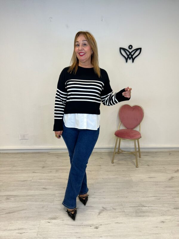 29,00 €El precio original era: 29,00 €.23,20 €El precio actual es: 23,20 €. - 20%JERSEY DE PUNTO DE RAYAS BAJO CAMISA NEGRO
