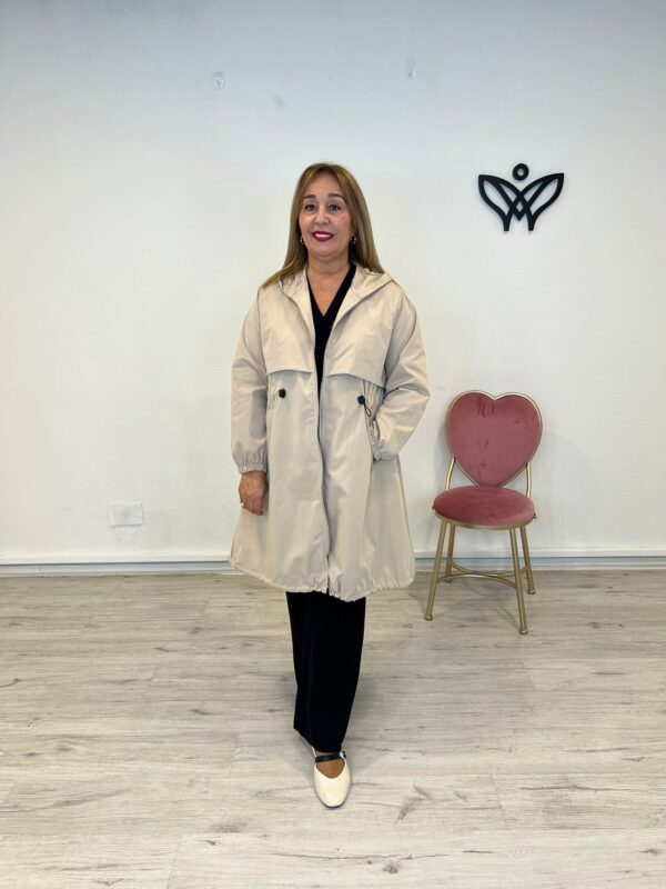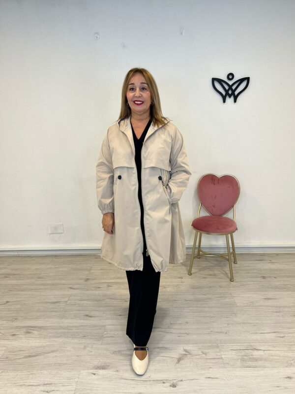 65,00 €El precio original era: 65,00 €.52,00 €El precio actual es: 52,00 €. - 20%TRENCH GABARDINA CAPUCHA CREMALLERA BEIGE