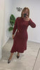 Talla única se adapta para la 36, 38 y 40. Vestido midi de licra burdeos, manga larga y muy favorecedor. Elegante, cómodo y perfecto para eventos o diario.