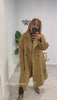 Abrigo largo solapas clásico de lana con cinturón en mostaza